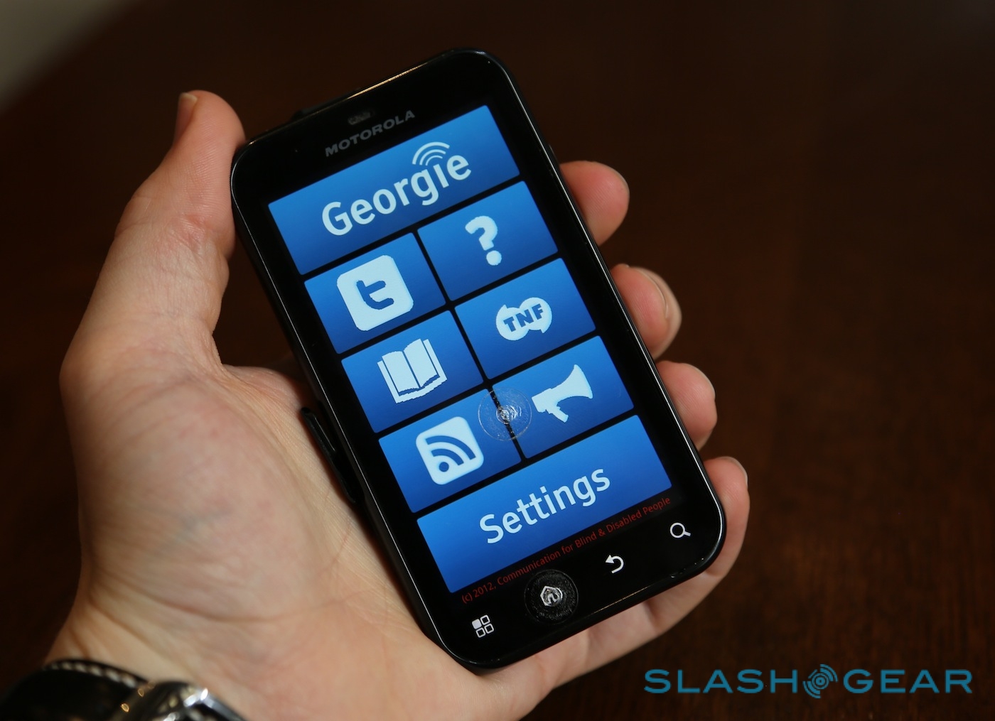 Android eyes? That's the promise from UK company Screenreader, who have created what's said to be the world's first smartphone app designed for, and by, blind and partially-sighted people. Georgie runs on most regular Android phones, but heavily redresses the interface into a combination of chunky icons, consistent navigation and clever haptics to suit the needs of those who have been all but left behind by the rise of touchscreen smartphones.