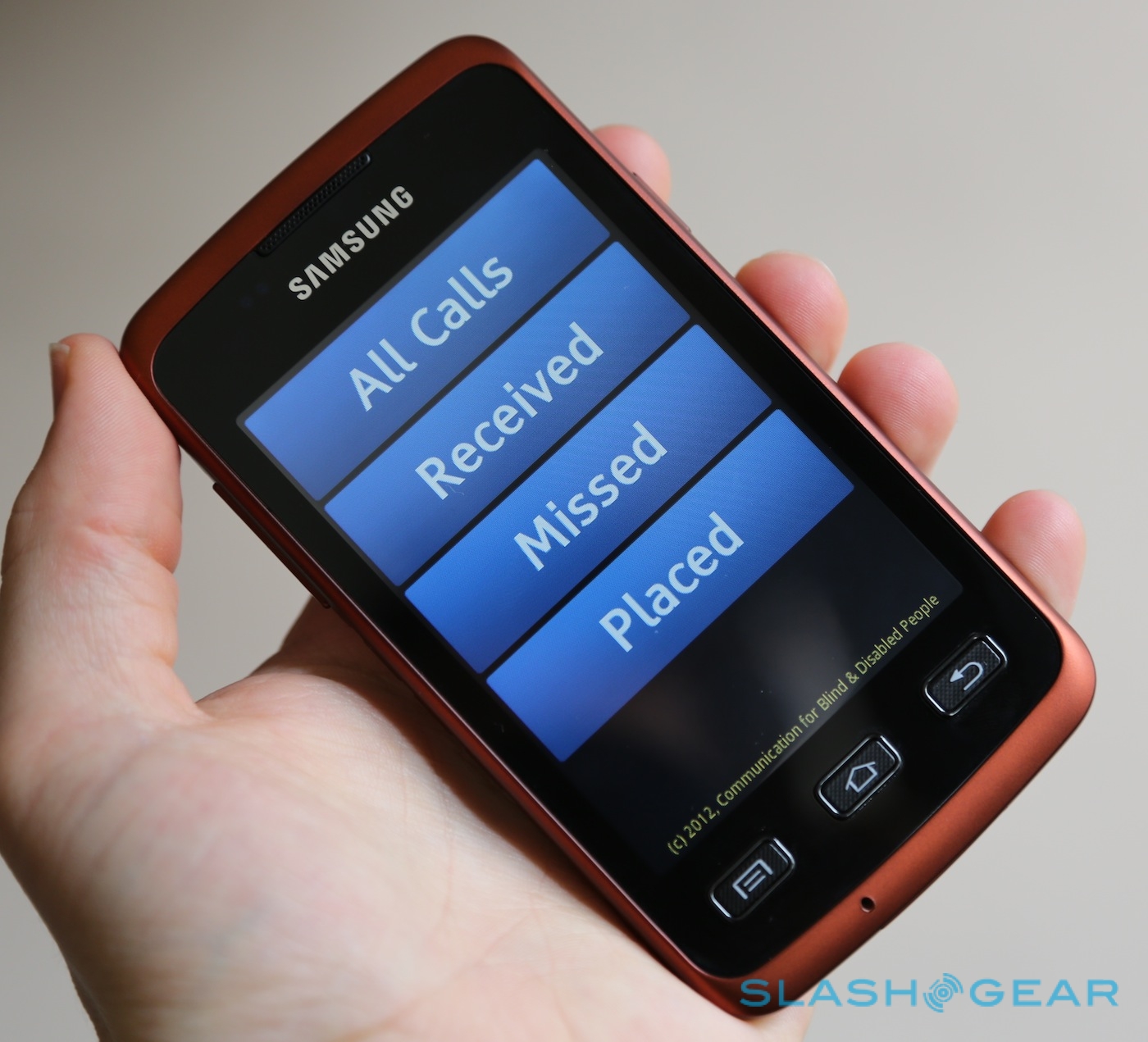 Standard functionality replicates the basic phone functions. There's a dialer, though entering a number is a laborious (if accurate) affair of pressing, holding, waiting, and then moving on to the next digit; when you tap the entered number, it calls it out and then dials it. The SMS app can handle voice dictation – using Android's standard voice recognition system, which means you'll need a data connection for the processing to take place – or allows you to select from a number of preset messages.