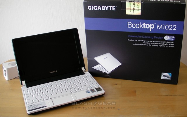 If there's one segment in consumer electronics where it's hard to stand out, it's netbooks. The race to the bottom line, together with strict rules from component suppliers regarding maximum specifications, means that the hardware of most machines follows the same, tired pattern. To differentiate, some brands have gone for super-slimline designs, or extended battery life; Gigabyte, meanwhile, have taken a more unusual route. Their Booktop M1022 netbook comes complete with a desktop docking station; our friends over at Mobilx.hu were good enough to send us a review unit to try out.