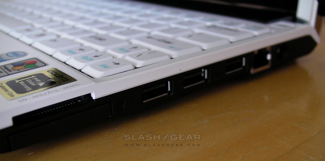 Speaking of the M1022, that treads the usual notebook path of an Intel Atom N270 1.6GHz processor, paired with the company's GMA950 graphics, 1GB of RAM and a 160GB 5,400rpm hard-drive. There's also WiFi b/g, 10/100 ethernet and Bluetooth 2.1, together with a 6-cell battery, three USB 2.0 ports, VGA, audio in/out, a 1.3-megapixel webcam and an ExpressCard slot. OS is Windows XP Home, and the whole thing measures 265 x 180 x 27.2-31.3 mm and weighs 1.3kg.