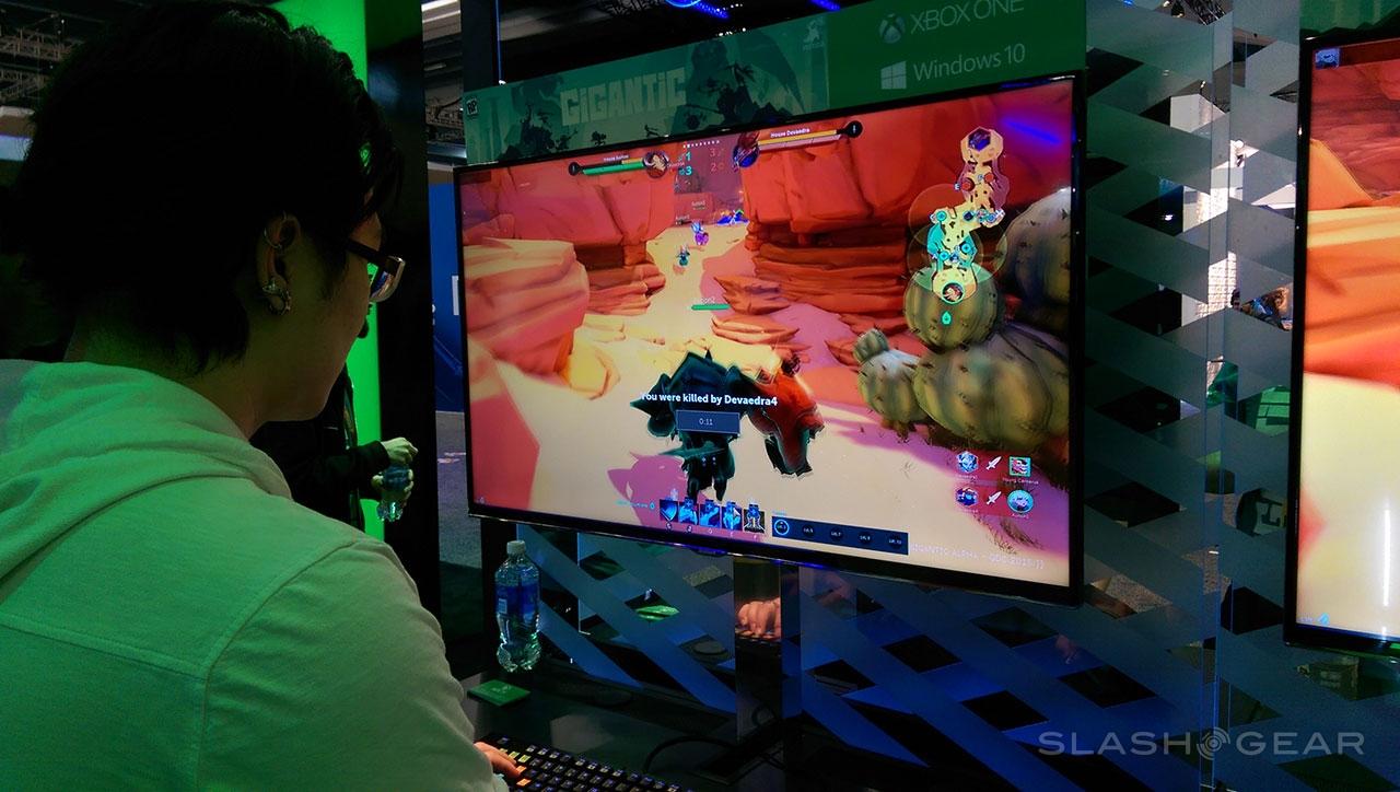 Earlier this week at GDC 2015, Microsoft's Head of Xbox Phil Spencer announced competitive action game Gigantic would be coming to Xbox One. This game was previously revealed to be coming to Windows 8 and Windows 10, and it'll be rolling with Xbox One at launch as well. We got the opportunity to go hands-on with the game this afternoon, in full team-based battle warrior form. This game will be cross-play and cross-advance, meaning basically everything will cross over, platform to platform, device to device.