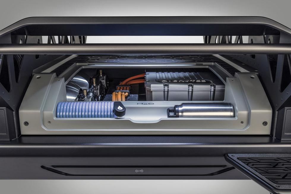 The electric platform offers instant high-torque output and the electricity generated by the fuel cell is exportable. The platform also produces water that can be used for other critical needs and the platform promises fast refueling, which is something traditional electric vehicles can't promise.