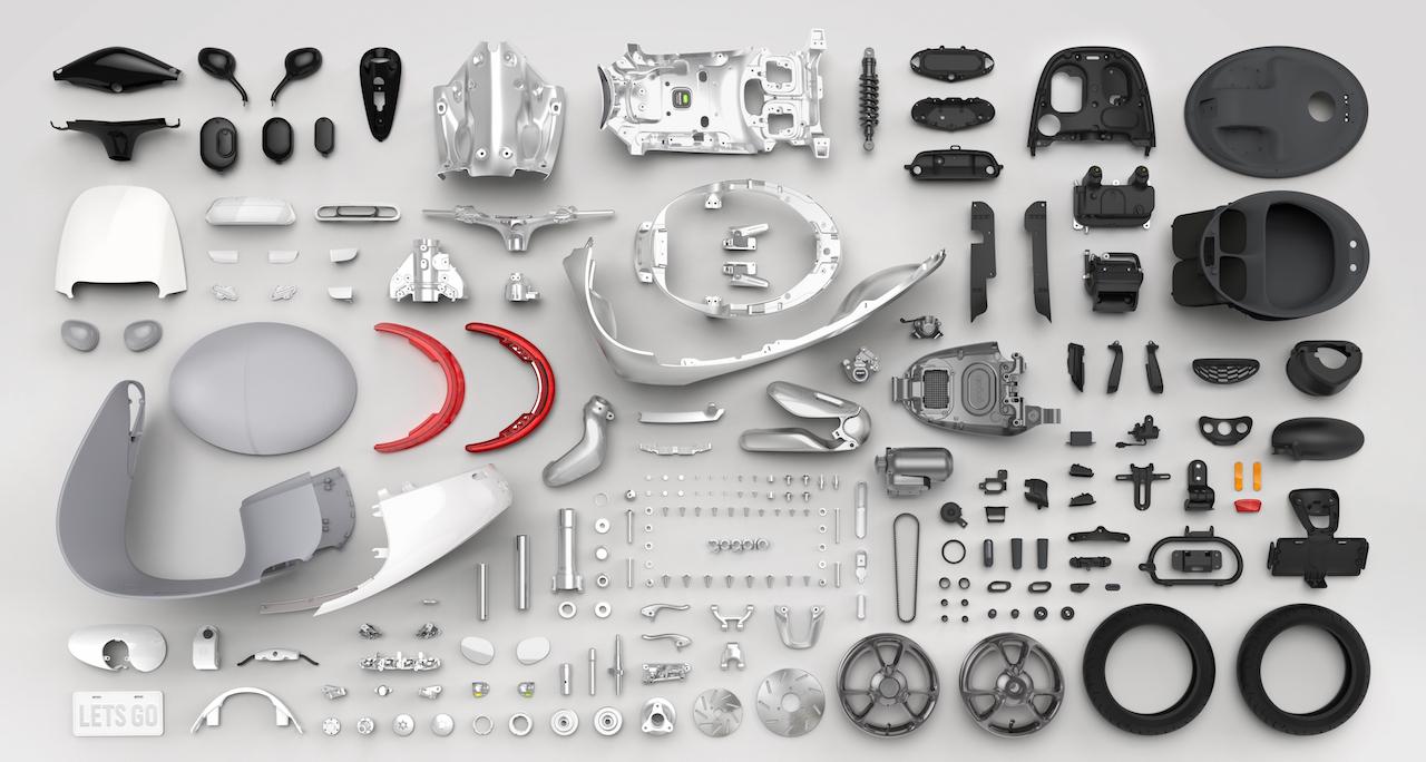 Together they report on Smartscooter health and status, either through the smartphone connection every ten minutes, or whenever you swap a battery via the NFC link there. Should something require attention, the majority of the bodywork and other components are held on either magnetically or via a single screw, for easier access.