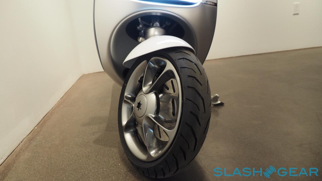 It's also more willing to lean into the corners, balanced so that the driver's head is at the pinnacle of a near-perfect triangle, and thus more stable as you tackle the corners. While I wasn't able to ride it myself, Luke tells me one of the scooter's primary goals was to deliver fun handling, even if you're doing city speeds.
