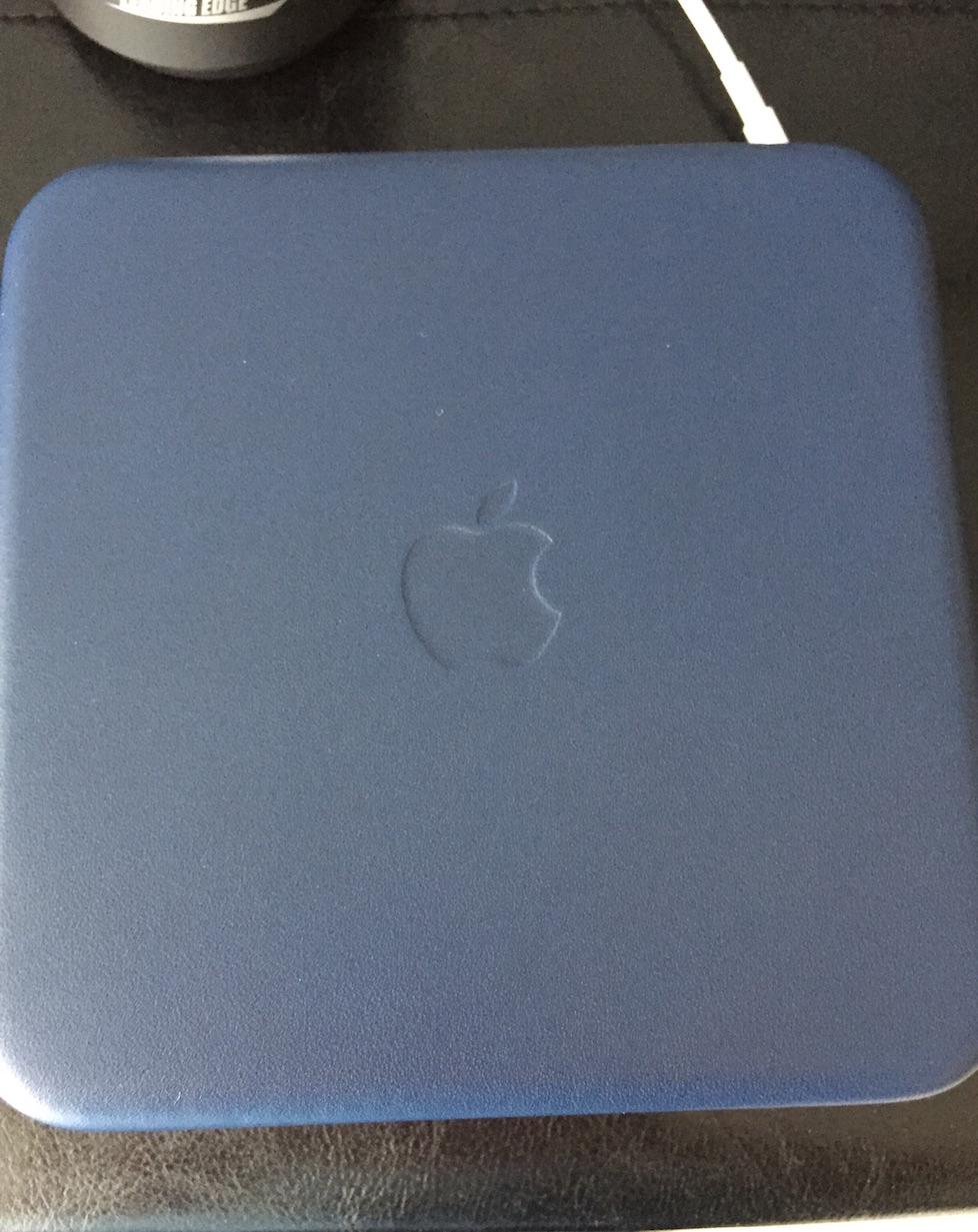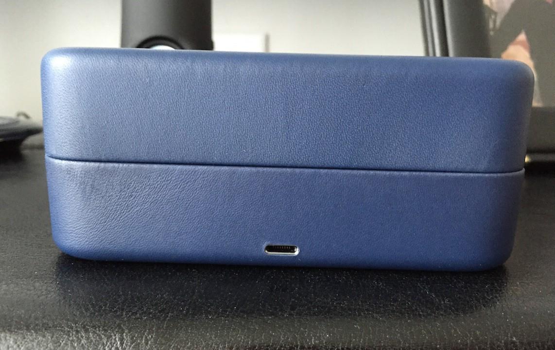 Users are presented with a colored leather box that both contains the Watch and acts as a charger with an integrated MagSafe cable. On the back of the box a small port for the USB cable can be found. Also inside is a cleaning cloth that matches the color of the leather box, and an information booklet.