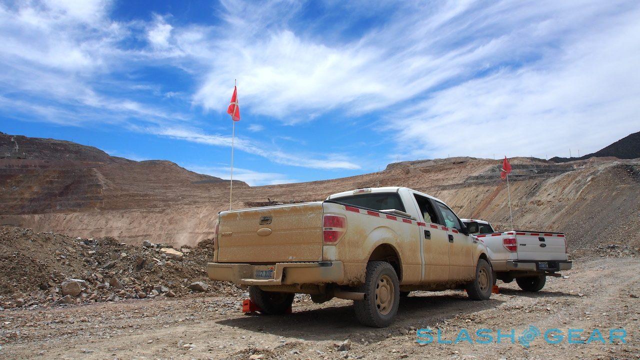 Watching the X1 prototypes carefully navigate around multistory dump trucks weighed down by 350 ton loads, around deep and oddly beautiful gouges in the earth, the scale of the challenge of extracting gold from dull rock suddenly seemed immense. Meanwhile, Ford is about to discover whether the changing of steel into aluminum counts as its own special type of alchemy.