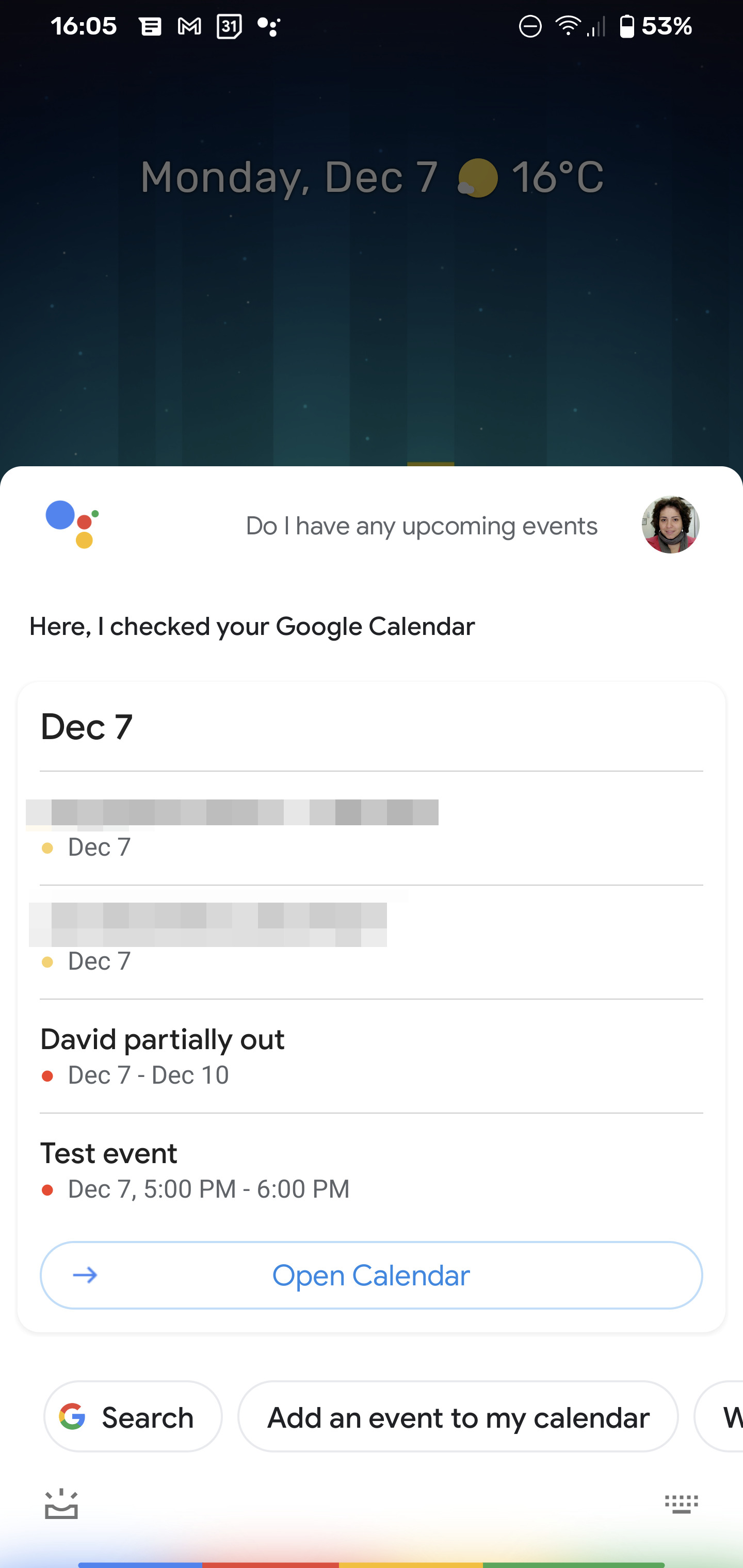The problem, however, is that Google Assistant doesn't do the same when it comes to calendar and meeting events. It only knows about that master account's Calendar and Meet events and if you have more, you'll have to share calendars with that account. It works but can quickly become a mess when everyone's calendars are shared with everyone else.