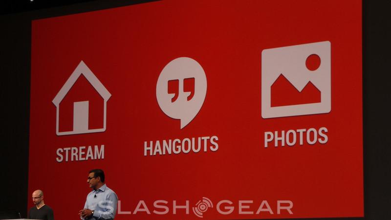 While we're still waiting for all the details, many of which Google doesn't have time to announce, they've confirmed a brand new photo experience and a new Google Hangout. Which for those who don't know, are Google's video calls feature. Instead, Hangouts will be Google's new unified messaging service from what it looks like. You can have messages with one person, or many. You can do standard messages, or video calling and more. We'll have more on Hangouts soon. Google Hangouts will be cross-platform too.