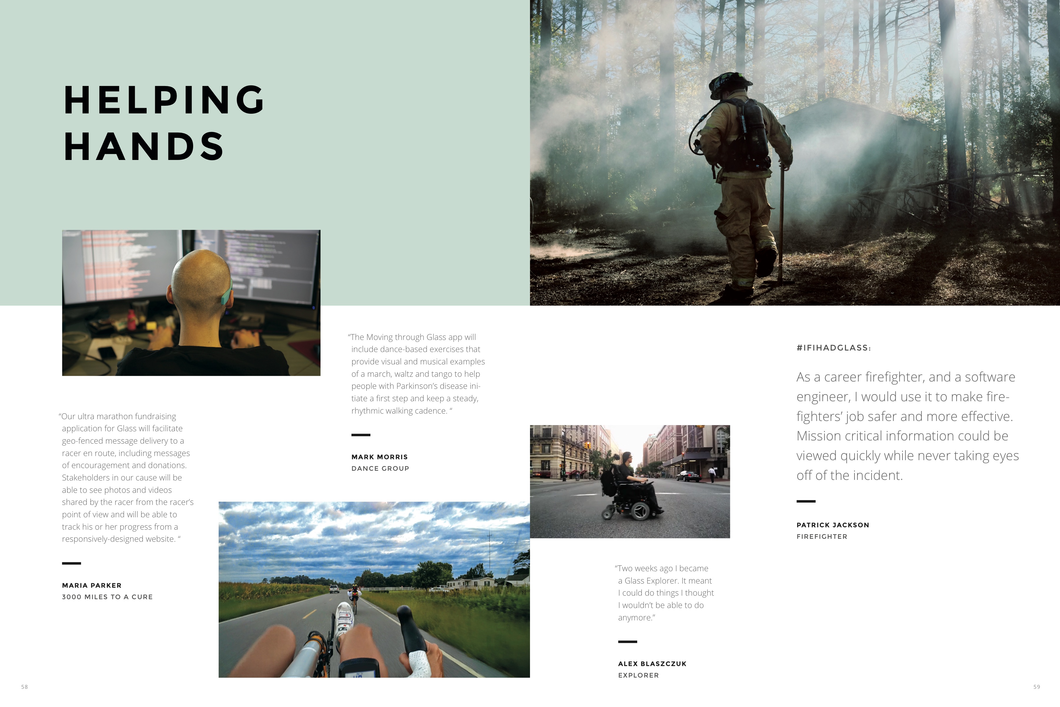 The initiation into the Google Glass Explorer universe is explored to – emphasized here by a fire fighter aiming to use Glass to save lives.