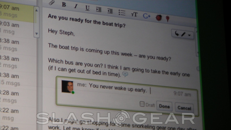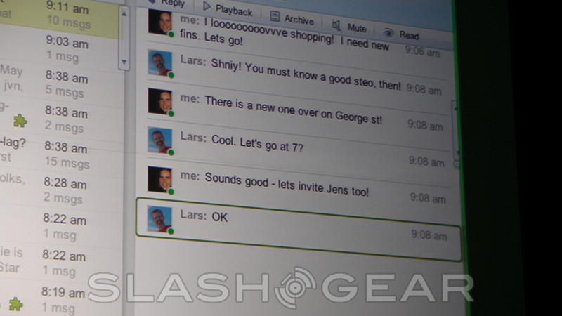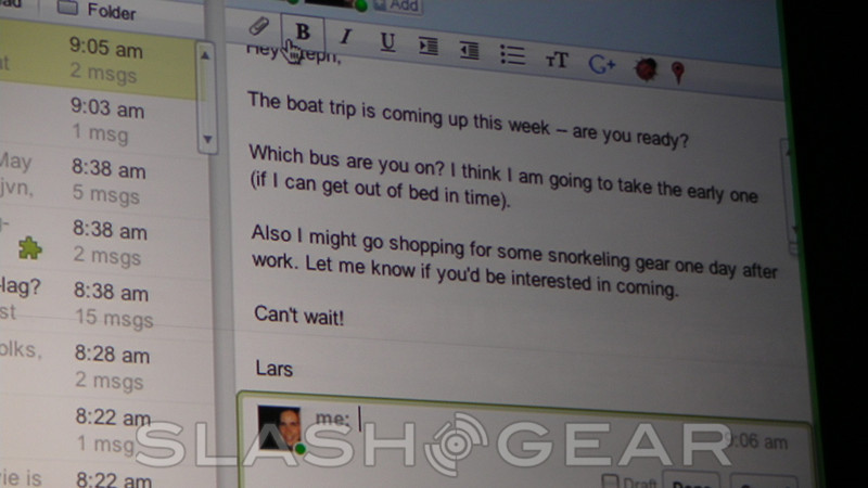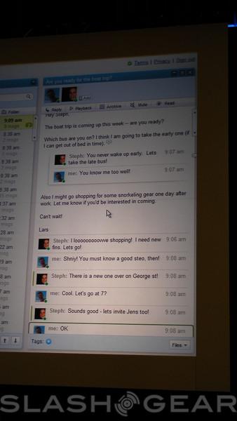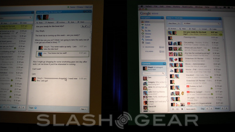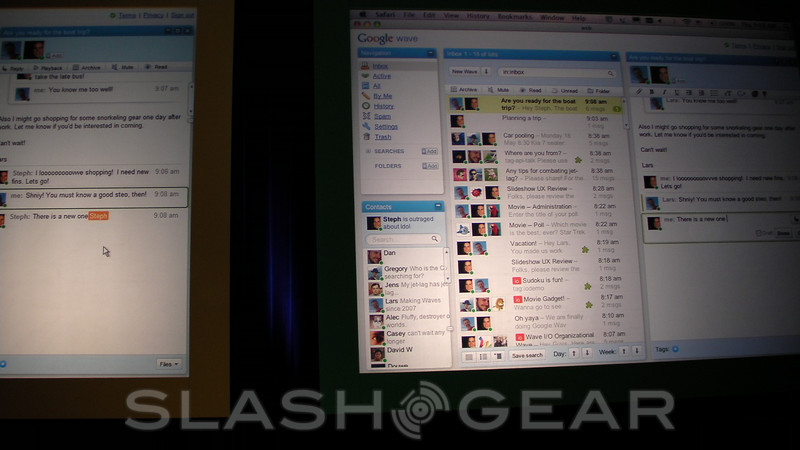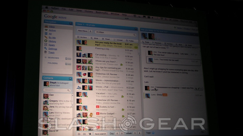 Google designed Wave to be customizable by developers. Developers can use Wave and implement it into their projects, workplaces, and applications for better communication and collaboration. This will be a huge benefit, since all workplace environments are different and have different aims. Wave is a confusing service at first, and it's something you have to see in action to fully understand, and even then, the scope of the project can go way beyond your own imagination. Wave is relying on HTML5, which was heavily discussed during yesterday's keynote. This ties it in all quite nicely. There are tons more features, and even iPhone and Android clients coming once the Wave service is launched later this year. If you want in on the testing, sign up over at wave.google.com
