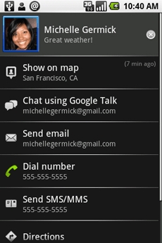 Since there are going to be people in your contacts list that you might not want tracking you down, there are a variety of privacy settings available. At the broadest you can shut Latitude off or enter a fake location; at its most specific, you can set privacy levels on a per-contact basis. It's also possible to only show location details to the city level. Latitude can figure out location via nearby WiFi routers, cell towers or true PS, with varying levels of accuracy.