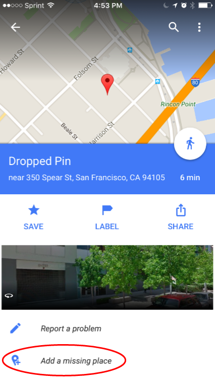 If a user is in a location where they know a landmark or business to be, but they see no marker as such, they'll be able to submit a location using a "Dropped Pin."