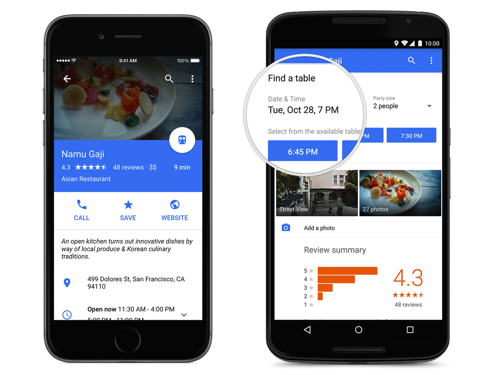 So, for instance, there's now the ability to not only see restaurant details, as per the existing app, but to make a reservation directly from the listing. Those in the US will be able to use the OpenTable-powered service initially, with the usual controls over time and party size.