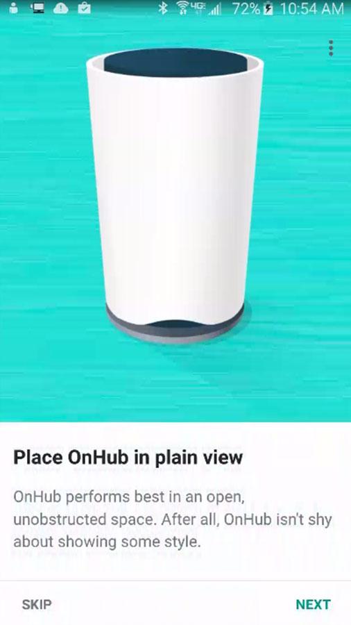 Below you'll see the setup sequence included with the Google On app for OnHub. Once your OnHub is connected, you'll find some interesting ways to work with the Wi-fi service already active in your home.