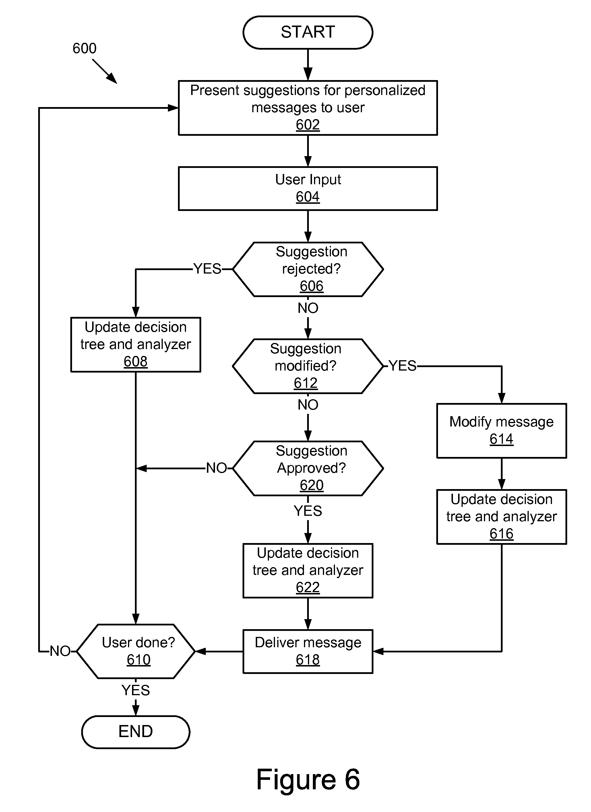 The patent is titled "Automated generation of suggestions for personalized reactions in a social network". Call us crazy, but "automated" and "personalized" don't sound very compatible; on the other hand, many of our social media interactions blend automation with personalization already. Instead of saying something in response to a post on Twitter, for example, we can just click "Favorite" or "Retweet" and call it a personalized day.