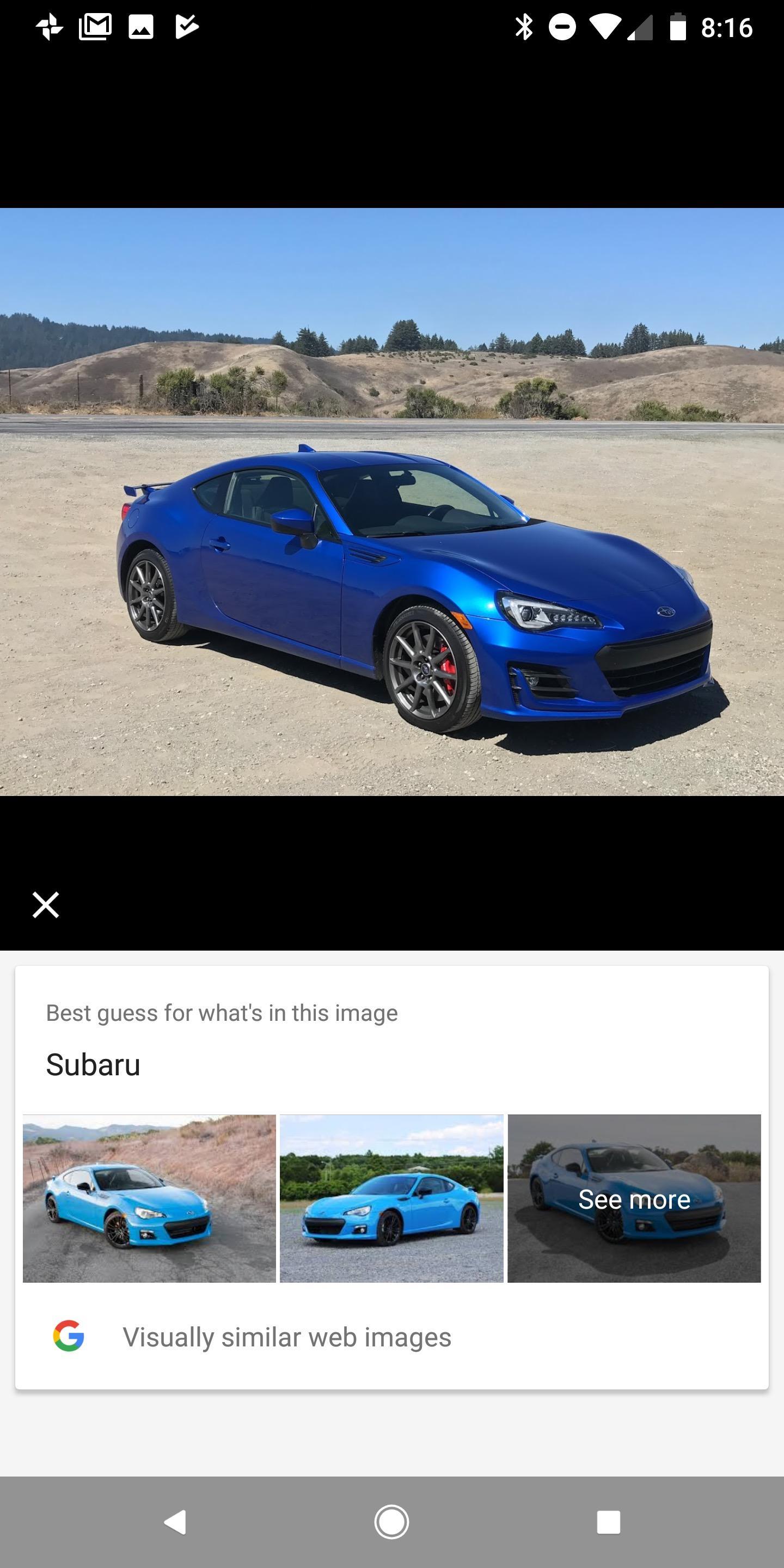 For the moment, it does a reasonably good job spotting what's in your photos. Identifying the Golden Gate Bridge is table-stakes, but Lens was able to recognize lesser-known public buildings too. It didn't get tricked into thinking a Subaru BRZ was a Toyota 86, and it recognized Liu Wei's "Two Drunk Painters" from a recent SFMOMA exhibition.