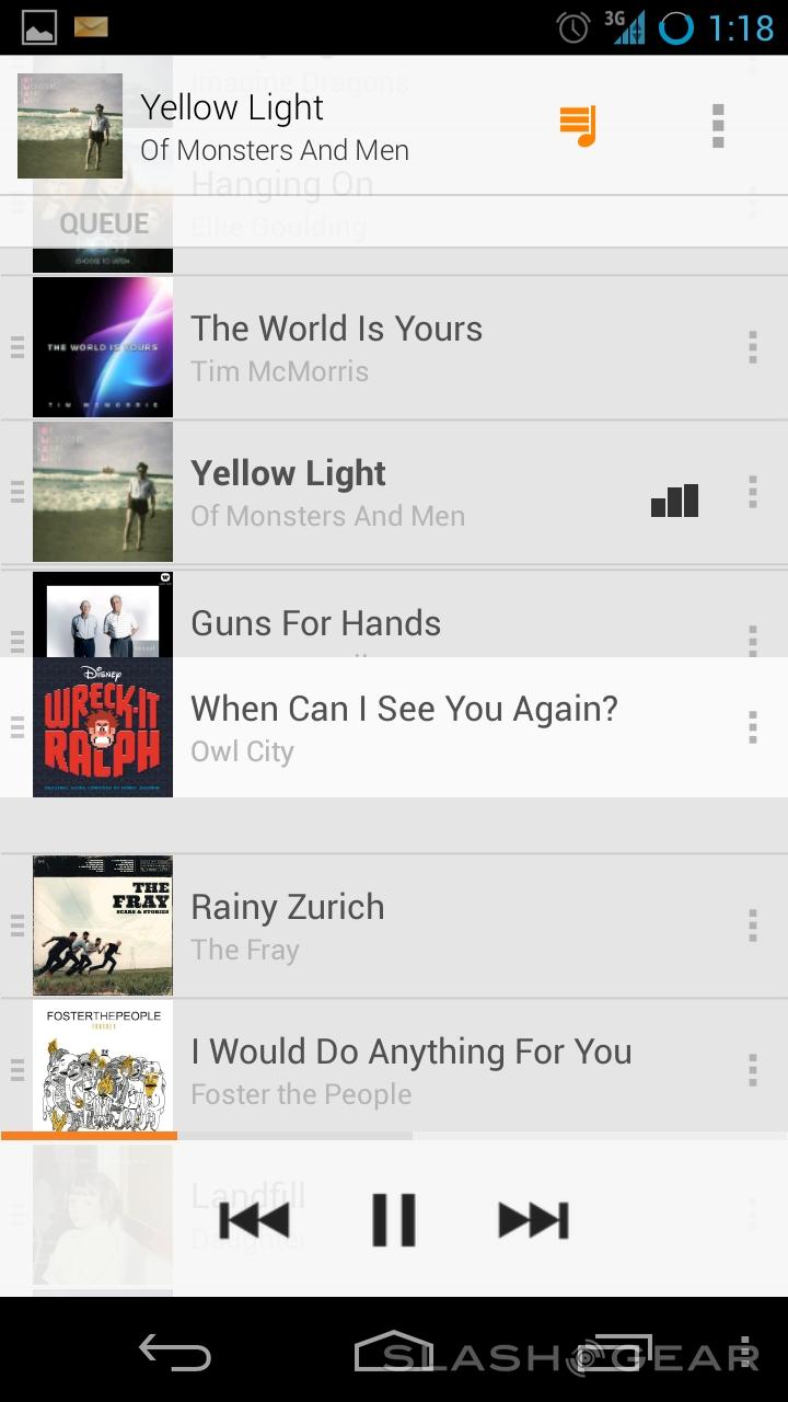 As for the user interface, nothing hasn't changed too much. You get the typical Google look with an orange and white color theme. Frankly, I'm not a huge fan of the squared-off boxes and shapes that many Android apps have, but it certainly doesn't hinder the music listening experience at all, and it's something that I can easily get accustomed to.