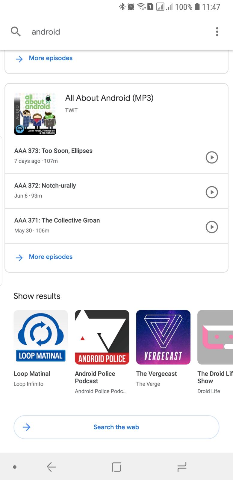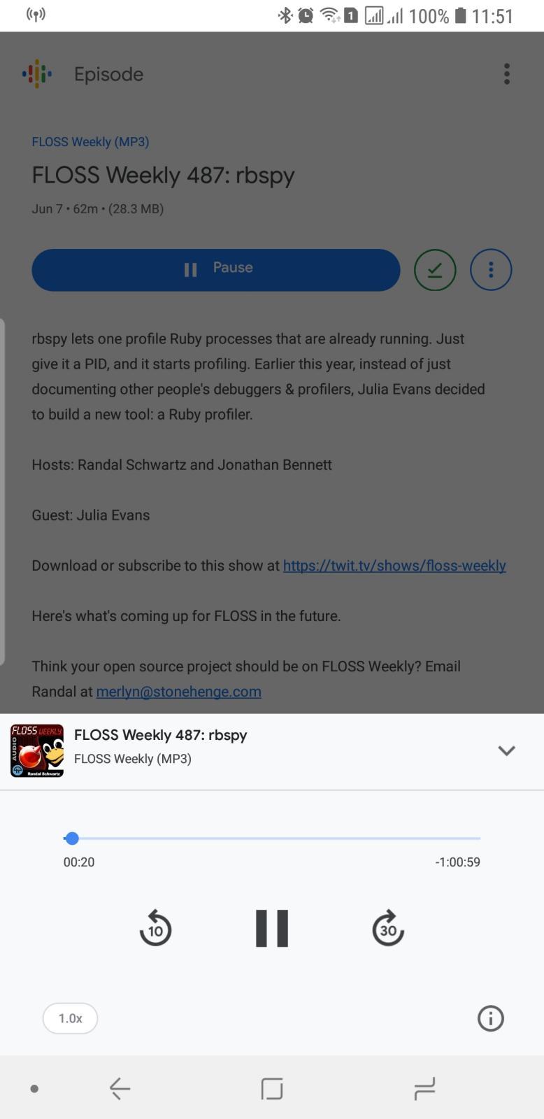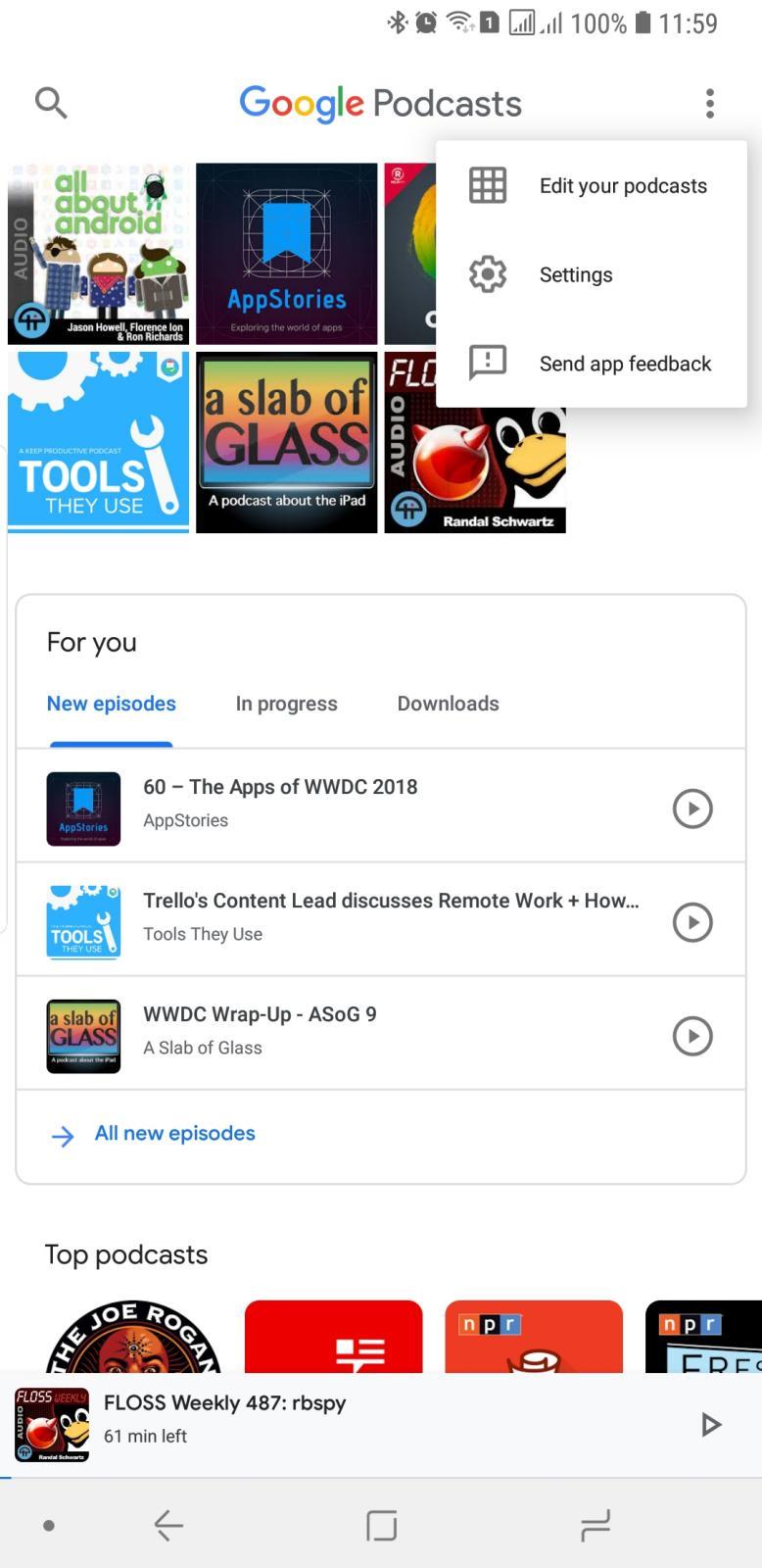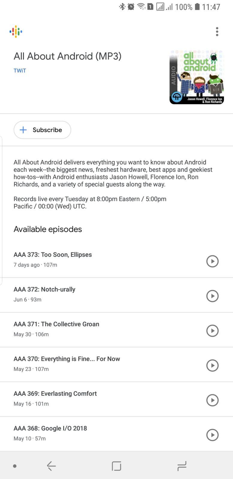 This simplicity is actually the special sauce of Google Podcasts over other podcast apps on either Android or iOS. You launch the app, go to your subscribed shows or start playing the latest episodes, then put your phone away. You won't lose time gawking over fancy images and slick animations or getting lost over bitrate options or download locations. If those settings do matter for you, then this isn't your podcast app. Mind, the player does let you skip back and forward a few seconds and even has playback speed options. So if you're one of the few that can only listen to podcasts in 2x speed, take comfort in knowing that Google hasn't forgotten about you.