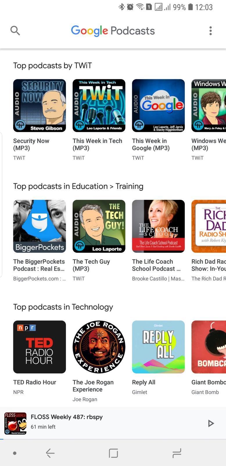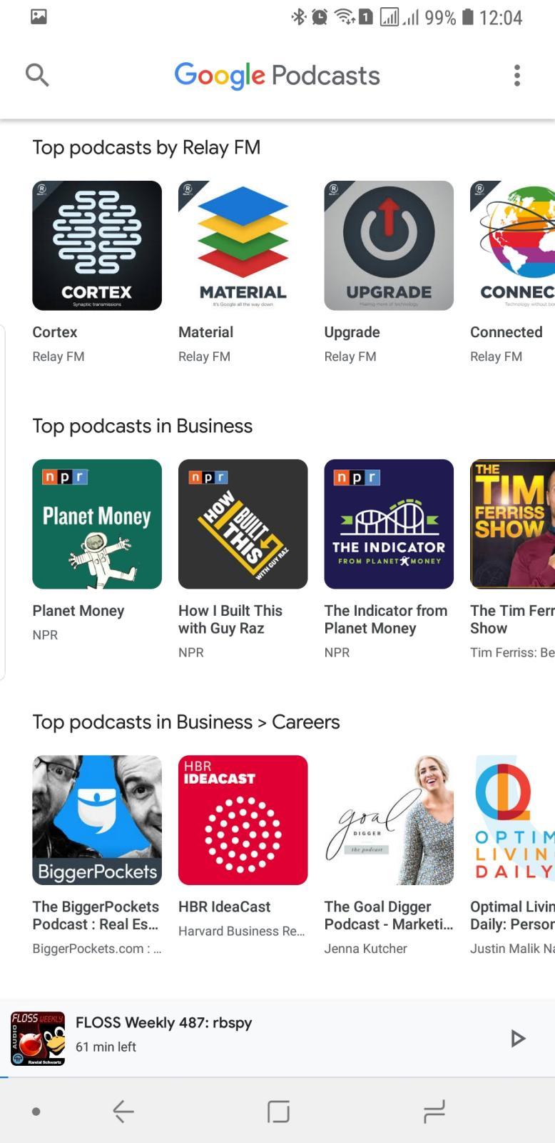 The Google Podcasts app's slogan is "Bringing the best of Google to podcasts", not "bringing podcasts to Google". That wording isn't accidental because, at the end of the day, Podcasts is pretty much a wrapper around two things Google is indeed best known for: search and recommendations. Searching for a podcast is just as you would expect of any Google-powered search engine. And as typical of Google, the recommendation system is powered by AI that learns over time from your searches and subscriptions. When launching the app for the first time, those recommendations are pretty generic, almost random. Start adding podcasts, though, and you'll see "Top" podcasts in categories related to your choices.