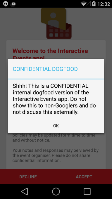 Though it's in the Play Store, Interactive Events says — on download — it's not to be discussed with "non-Googlers", and is labelled confidential. So much for that.
