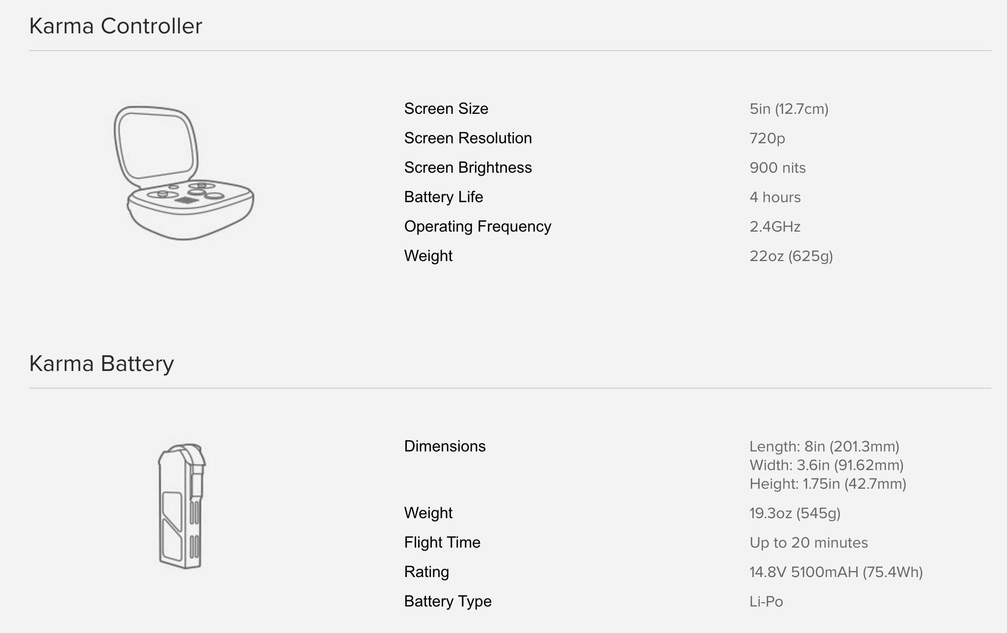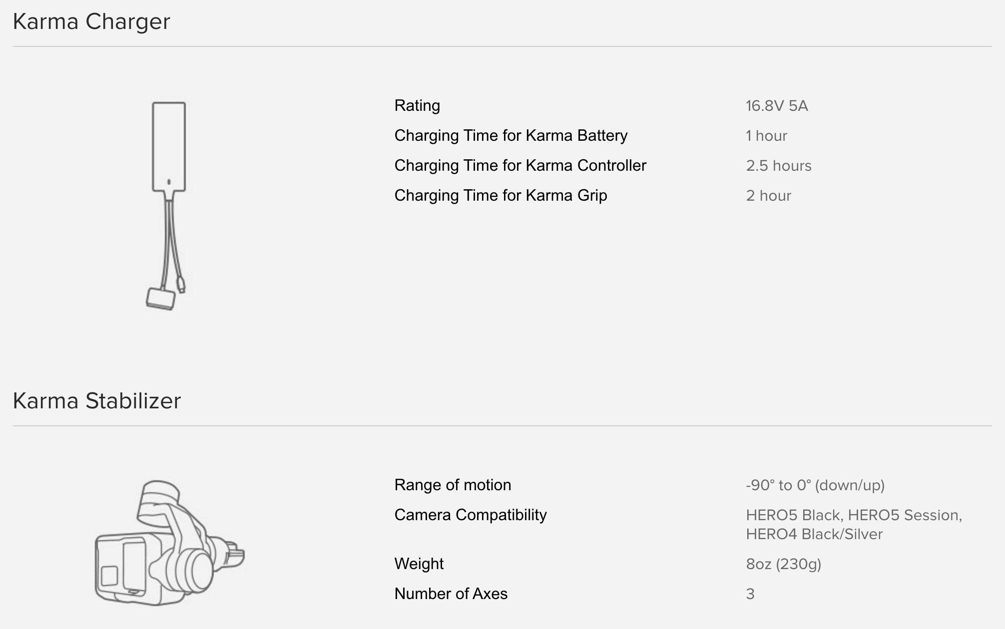 *In fact this drone's use of a Karma Grip for stabilization means that only the GoPro Hero 5 Black, Hero 5 Session, and Hero 4 Black and Silver will be compatible.