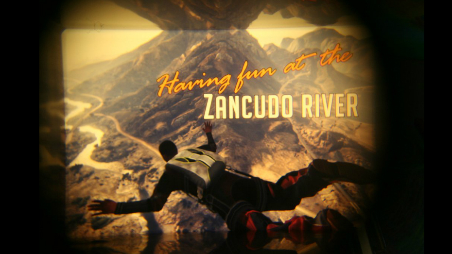 The photo viewer is small enough to fit on a keychain, and is branded with a "FlyUS" logo – likely one of the businesses found in Grand Theft Auto V. The viewfinder's five slides show a handful of different locations, including Zancudo River, Del Perro Pier, Grapeseed, Vespucci Canals, and finally, Vinewood Hills. We have to say, this is one of handiest pre-order bonuses we've ever come across.
