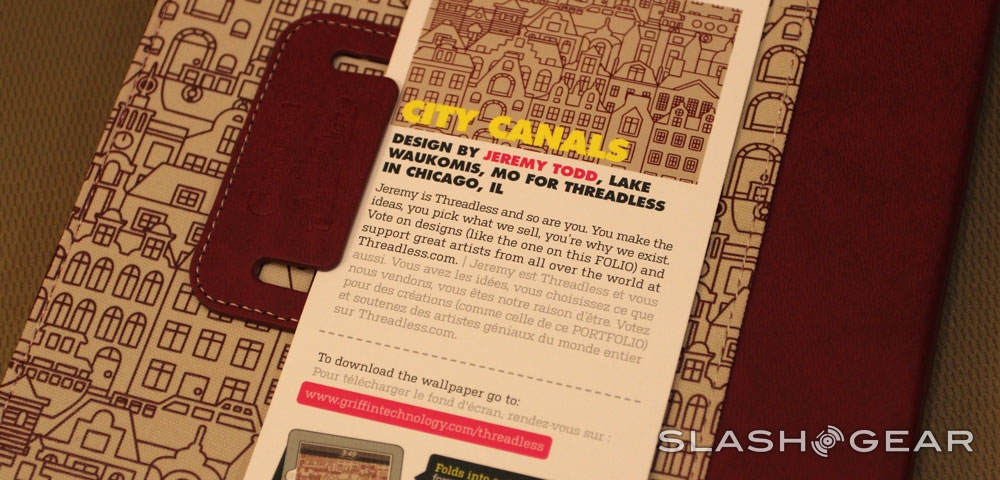 This week we've got our hands on one of the newest series of iPad covers from the extended iPhone and iPad case series made by Griffin in collaboration with Threadless! This lovely Folio is a now-classic design by Griffin working with the artwork of Jeremy Todd, with the design on the front and back being called "City Canals." This design was made by Jeremy Todd for Threadless (and Griffin) in Chicago, and as a bit of a bonus you've got the option of downloading a perfectly sized wallpaper for your iPad to match – it's the total package!