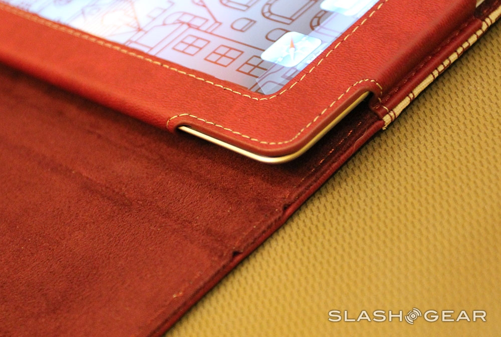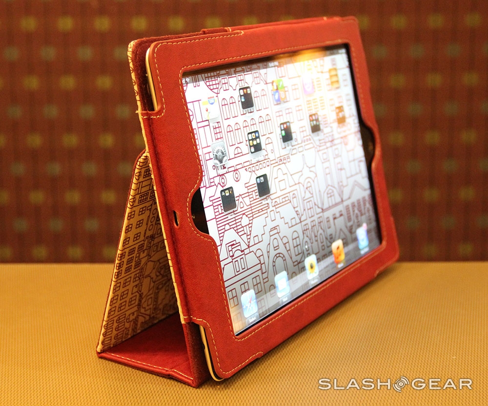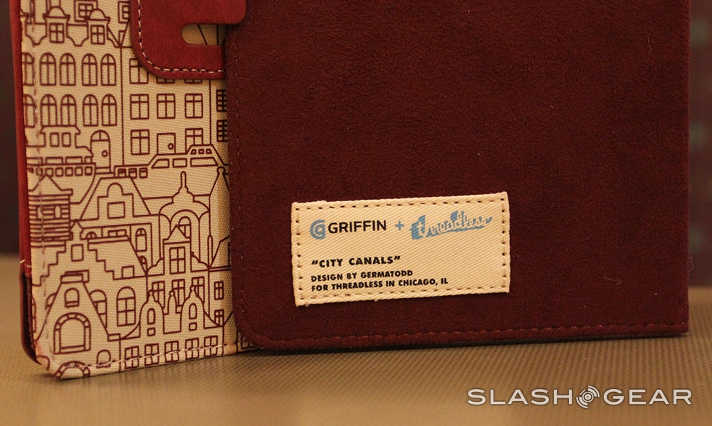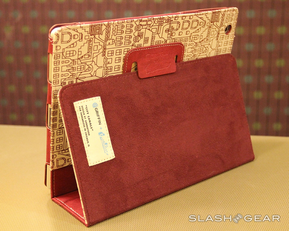 Of course you'll want to know that you're being protected here, even if Jeremy Todd (aka GERMATODD) is watching out for you fashionably. Griffin has created a case here that protects your iPad from general drops with a relatively hard back and front, and leathery material through the middle. You can fold the folio shut for carrying, back for lying flat, and right up under its back-facing notch for a stand-like situation. The whole thing is a fab conglomeration, and the artwork makes it all the better.