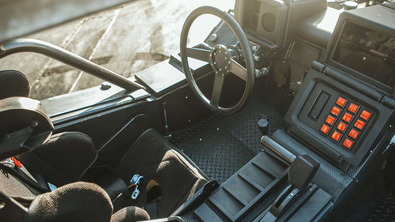 Power comes from a gigantic 7.2-liter twin-turbo V-8 that produces 1060 horsepower. All that power combined with massive 43-inch tires should allow this vehicle to go anywhere very quickly. Another interesting touch is that both axles have steering assemblies giving it four-wheel steering.