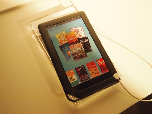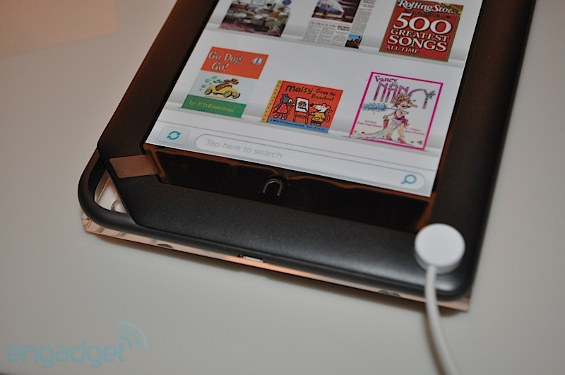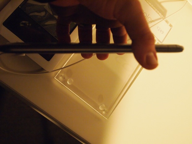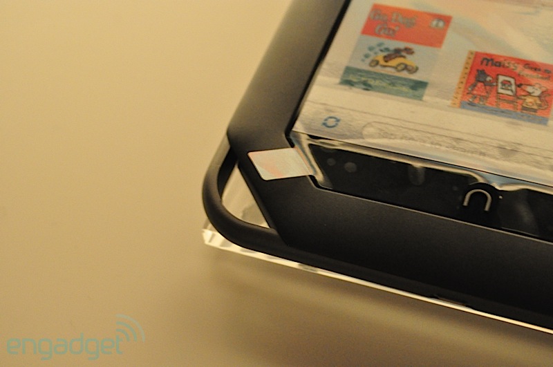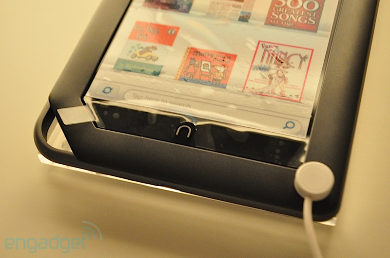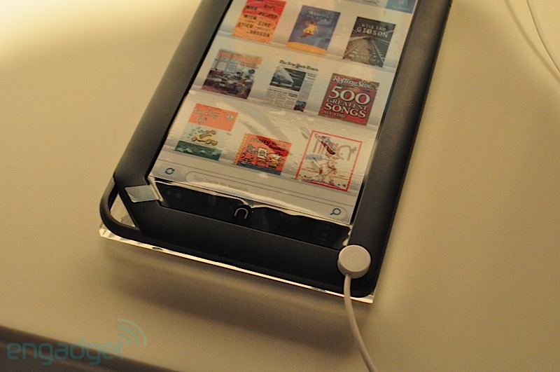 Now what I think might happen as a result of this little loop being here is a similar situation, this time with mostly text-based presentations. This pad becomes something that can be safely put down on a table and walked away from because it can be locked easily through this loop. People hoping to show of their book, magazine, newspaper or whatever as a publication that rises above the tactile experience of holding paper and gets down instead to the words. I don't know that I'd ever agree to such a presentation, as I'm a firm believer in the eternal nature of the book, but it could be neat!