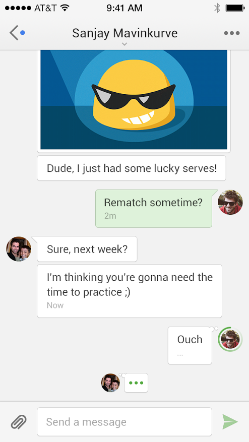 Somewhat still on the visual side but actually also a new feature, the new Hangouts brings in support for stickers. Yes, the sticker craze of instant messaging has reached Hangouts for iOS as well. Google+ users might be familiar with these overgrown animated emoji-like faces. Now Hangouts chatters can insert them too to liven up the conversation.