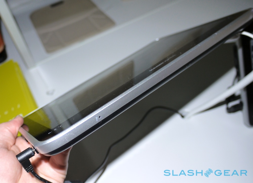 So, the experience falls short of what you get with, say, a Motorola XOOM, but instead you get a significantly lower price tag of around €349 ($505). Build is reasonably chunky and fairly high quality, all plastic and no metal, though the SN10T1 certainly falls well short when it comes to the current race to be the slimmest slate.