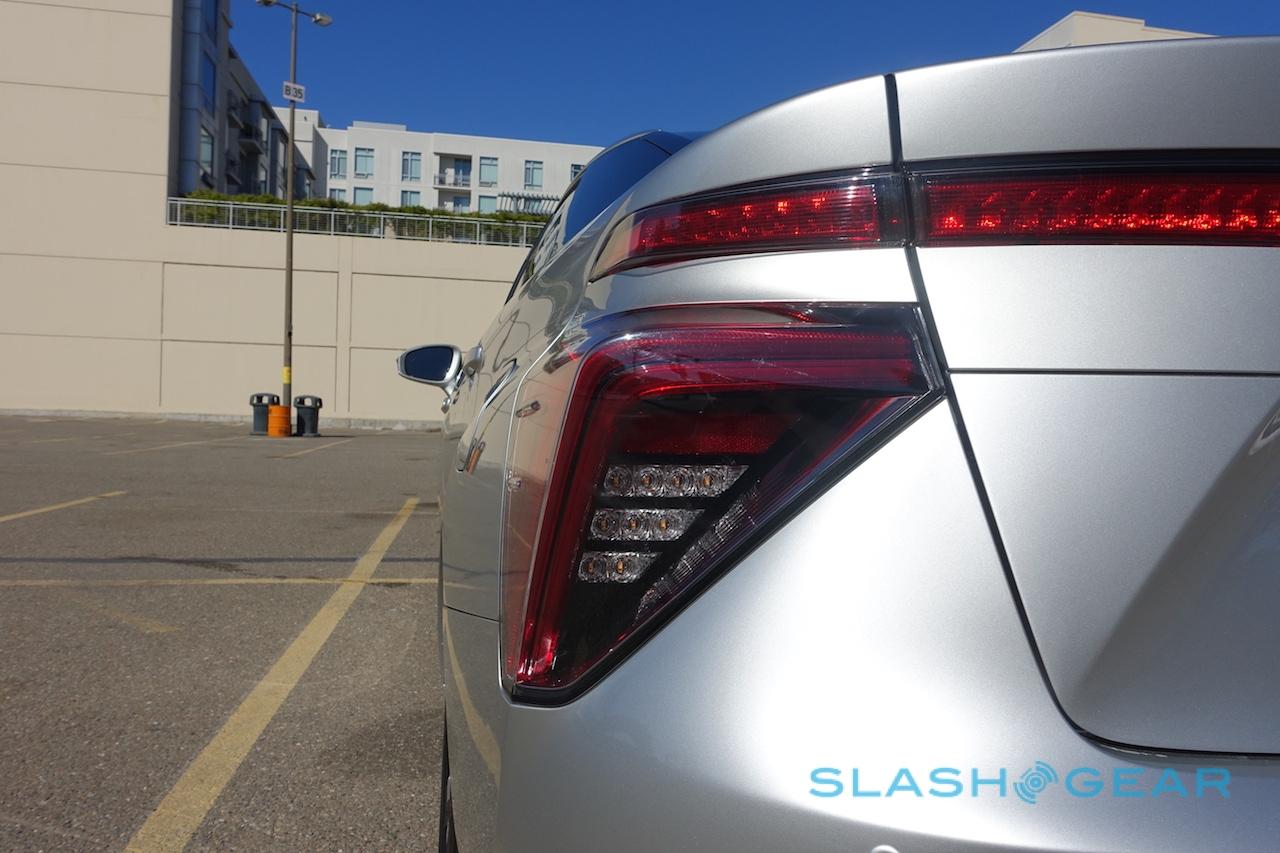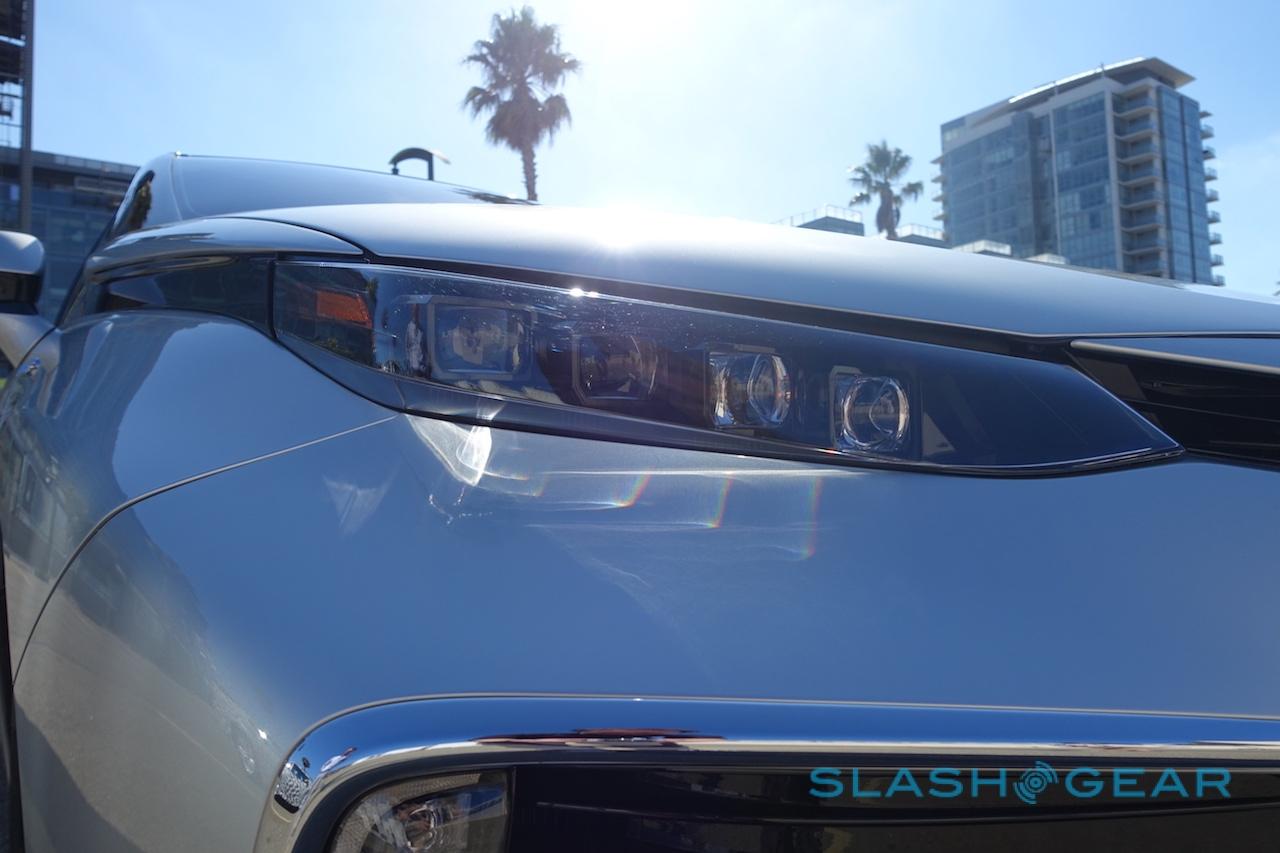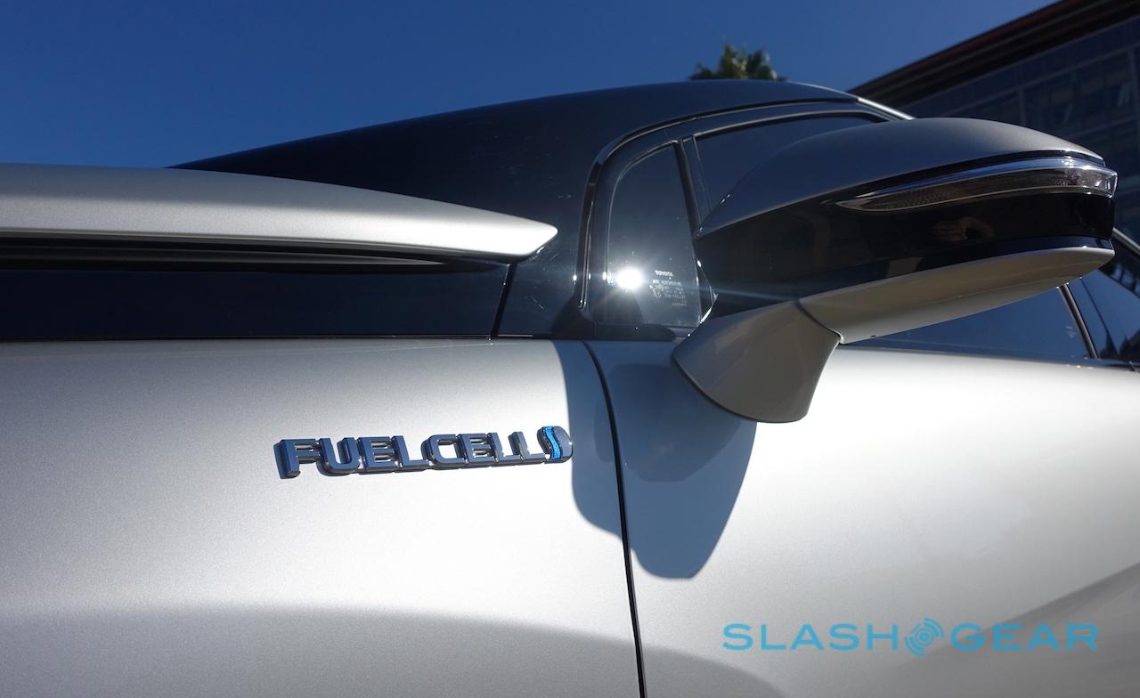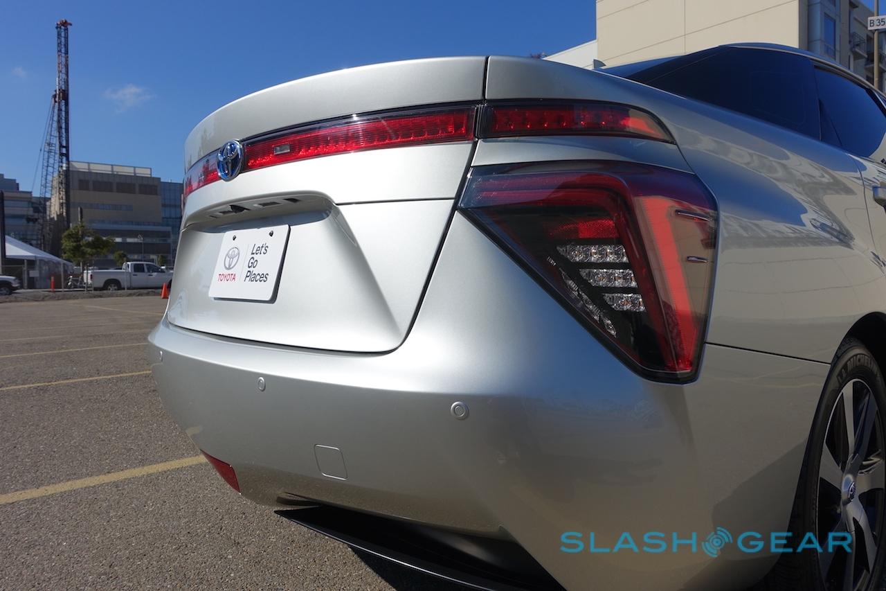 Up close, and just how near the FCV's production design is to Toyota's original concept still surprises. Toyota jokes that all the designers did was slap a few large rear-view mirrors on the outside, and while it wasn't quite so straightforward as that, it's definitely distinctive.
