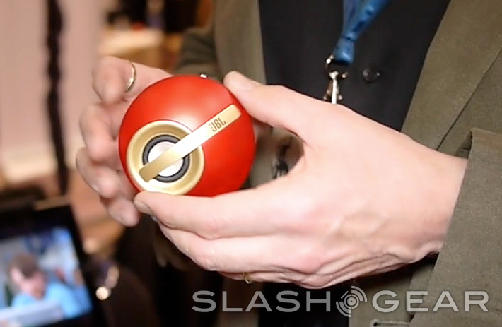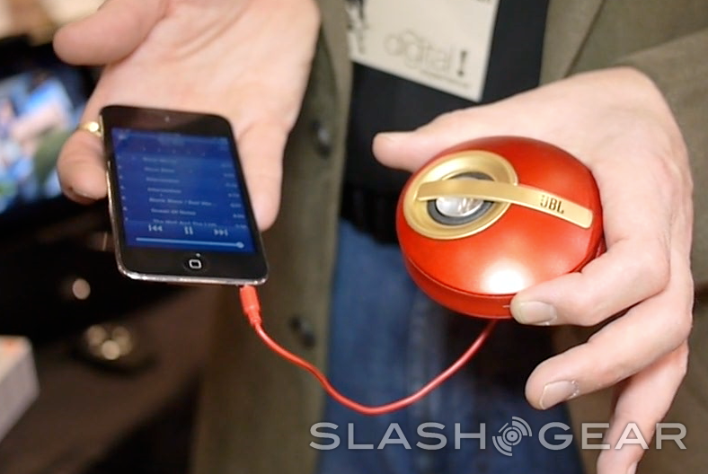 The folks at Harman have revealed a hockey-puck of a portable speaker this week, it being called the JBL On Touch Micro and we having a hands-on experience for you here today. This device, first of all, will cost you a grand total of $49.00 and will be available sometime this spring. Second of all, it's the cutest little monster in the world so you'd better pay attention to it. We got our look at the red Iron Man looking version, by the way, so no resisting!