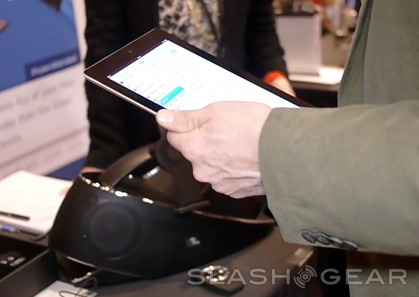 We were given a hands-on look with this device that included the iPad only, but note the following: its fully capable of working with all manner of Bluetooth enabled devices for audio. looking just a bit emptier without the iPad it's made for sitting in the dock. This dock is able to work with A2DP and AVRCP Bluetooth profiles, and also has a lovely 3.5-mm input jack so it again can work with one whole heck of a lot MORE devices. It's connected!