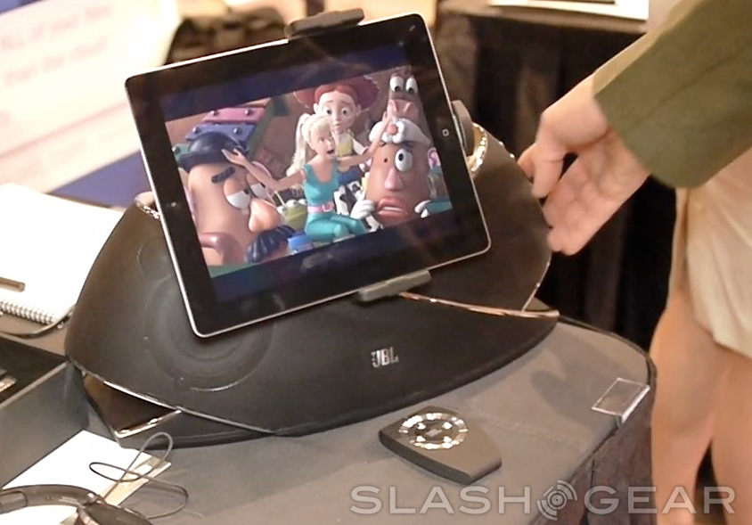 This device is available this season for a cool $499.95 and is part of a suite of devices, if you please, of speakers working with mobile devices for your pleasure. Check out our hands-on pics and check out the hands-on video in just a bit!