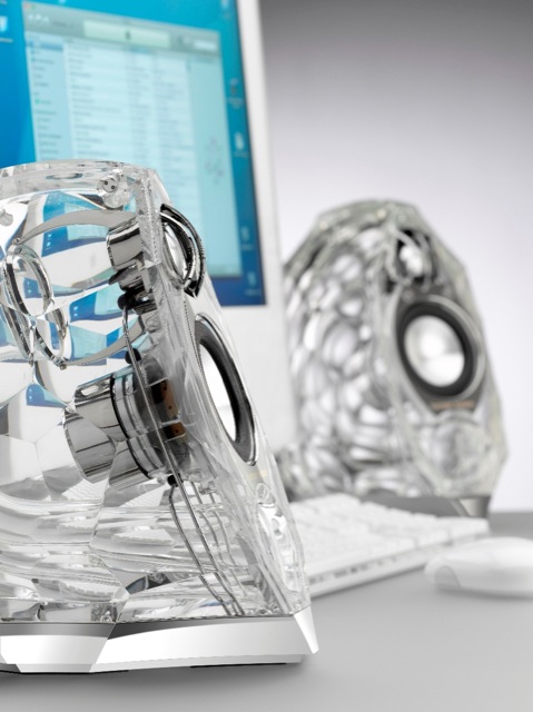 This eagerly-anticipated two-piece speaker system provides the perfect mix of cutting-edge style and impeccable sonic performance. Whilst boasting striking good looks in the form of a stylised clear glass design, the GLA-55 also packs a high-impact audio punch. Crisp soundscapes are delivered through the system's powerful AtlasTM woofers and crystal-clear CMMD® tweeters. The GLA-55 speaker system combines art and science to deliver the ultimate audio solution for desktop computers, laptops and portable media players.