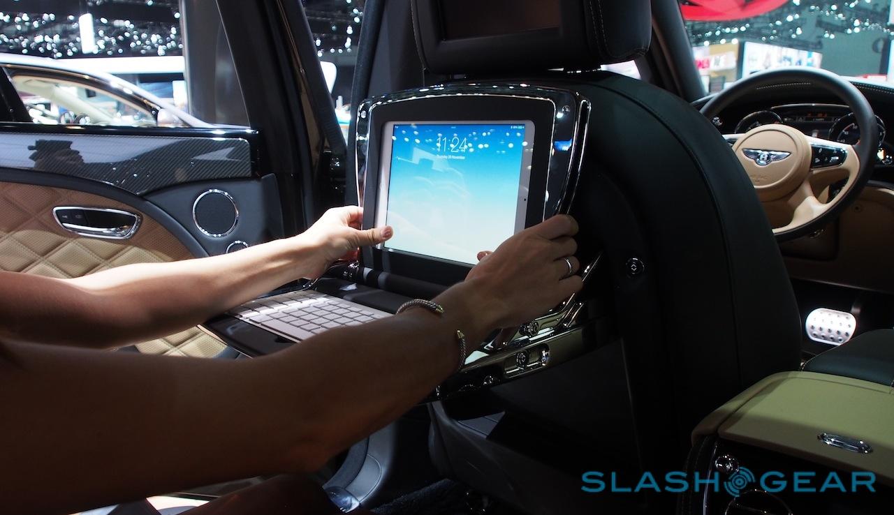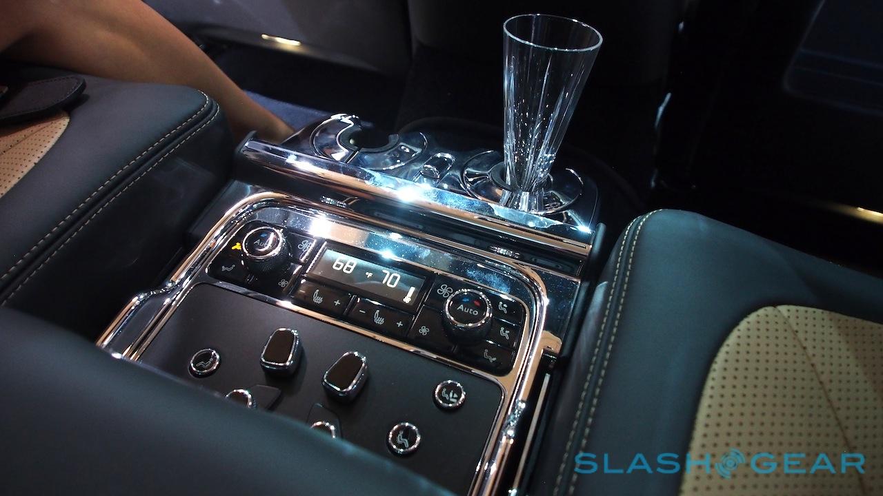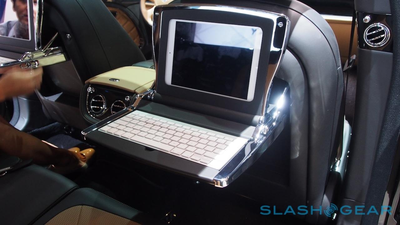 It all looks classic Bentley, with a degree of attention-to-detail and finishing quality a few steps above even what other would-be-luxury sedans would aspire to. Yet behind the scenes there's WiFi hotspot functionality and a 60GB hard-drive for movies and music on the go, while the tray tables – motorized, naturally – also power up to reveal an iPad Air 2 dock and Apple Bluetooth keyboard.
