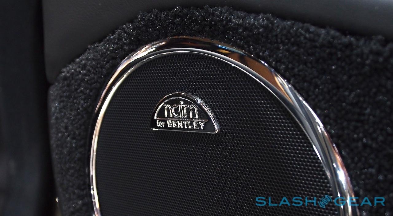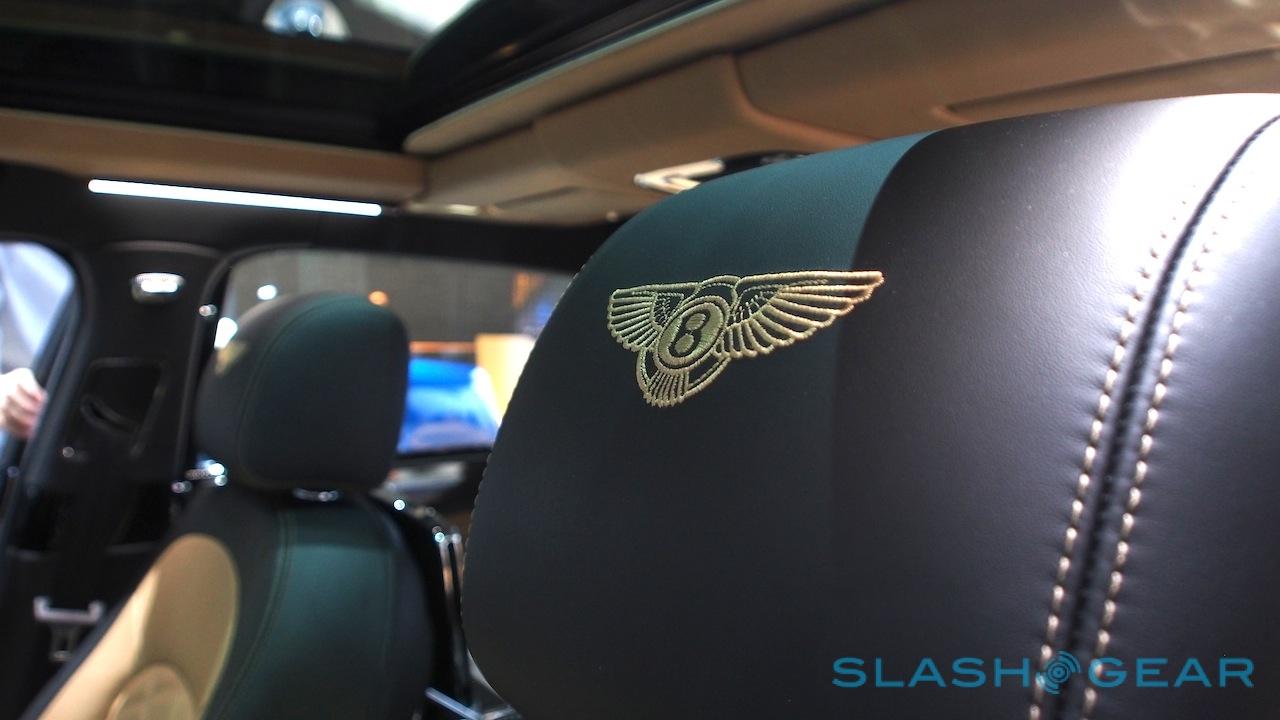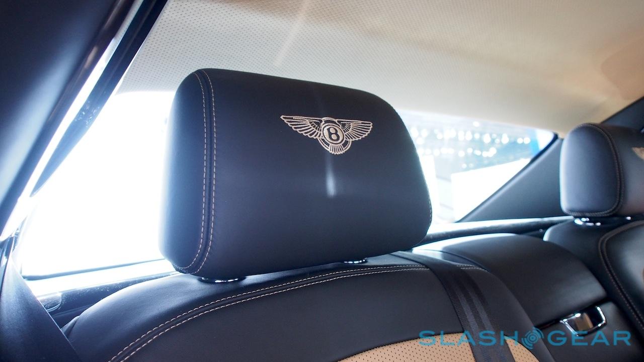 There's obviously more leather, and more diamond stitching. Optional in the show car Bentley had brought along were the two 8-inch displays in each of the headrests, which work with Bluetooth headphones if you're not wanting to enjoy the 2,200W Naim for Bentley audio system, the twenty speakers for which are trimmed in eye-catching chrome.