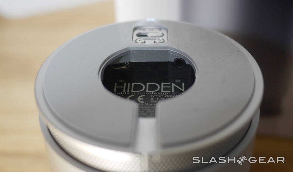 You can use this device's Bluetooth connection as we do in the demo hands-on video above, or you can use the built-in FM radio (along with included plug-in antenna if you wish). You can also connect in a more traditional hard manner with the included 3.5mm speaker cord to whatever device you've got that'll blast out sound. The final sound quality is essentially the same be it through the audio jack or via Bluetooth, and it's certainly not perfect – but it can get loud enough to fill a generous sized apartment room without a problem. While its not for audiophiles, HiddenRadio is going to sound more than high quality enough for the general public.