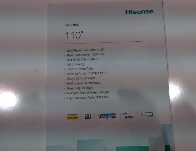 Hisense 110-Inch 4K LED TV Offers 120 Hz Refresh Rate