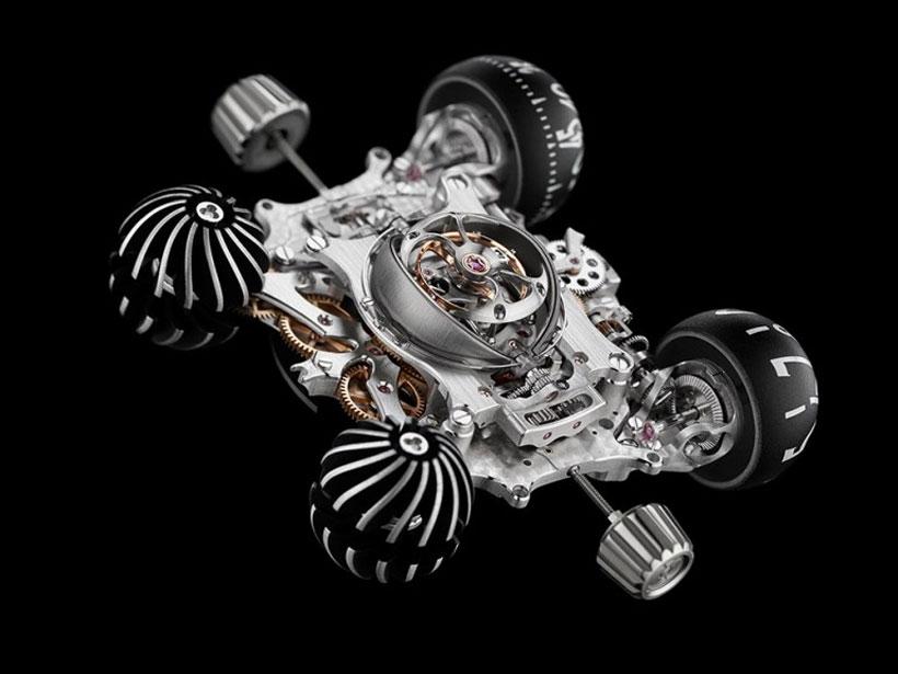 The watch is called the Horological Machine No. 6 (HM6) "Space Pirate" and it reminds me a bit of the flying cars from Blade Runner. The watch is made up of 475 components with the case having 80 components of its own.