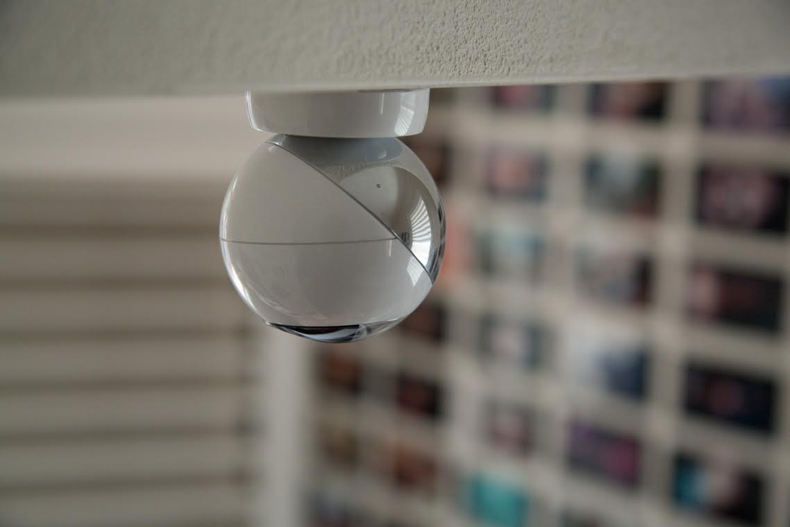 Homeboy includes a base cradle which can be fixed to a wall, door jam, or somewhere else, and then the camera itself clings magnetically to it. That allows it to be twisted and turned to point its lens wherever you prefer, but also swiftly taken down so that you can recharge it.