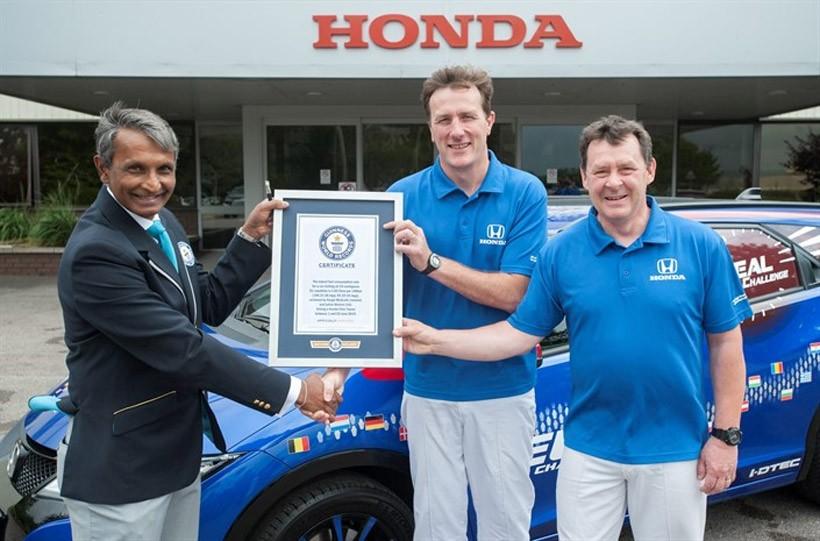 The drivers of the car that grabbed the record were Fergal McGrath and Julian Warren from Honda's European R&D team. During the entire trip, the duo had to stop for fuel nine times with the car racking up 932 miles on each tank of fuel.