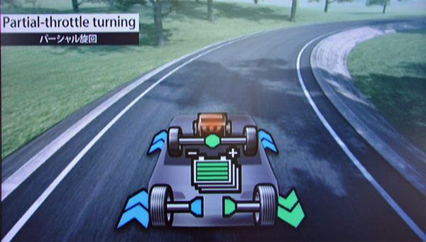 When more force is needed the front electric motor will kick in, and if that isn't enough the gas engine will then fire up. One of the coolest things is that the electric motors will be able to change what direction the power is driving the rear wheels from forward to reverse to help the car turn. That means when turning right the right rear electric motor will turn backwards and when turning left the left rear electric motor will reverse. The gas engine the car is a 3.5L V6 with direct fuel injection.