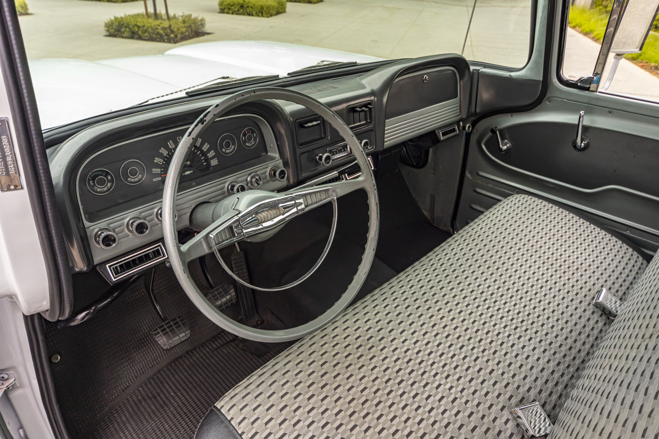 The restored truck has hand painted graphics and has Honda 50 and CB160 motorcycles from the era in the bed. The delivery truck has a half-ton chassis, 8-foot bed, 283 CI V8 engine making 160 horsepower and a 3-speed manual transmission.
