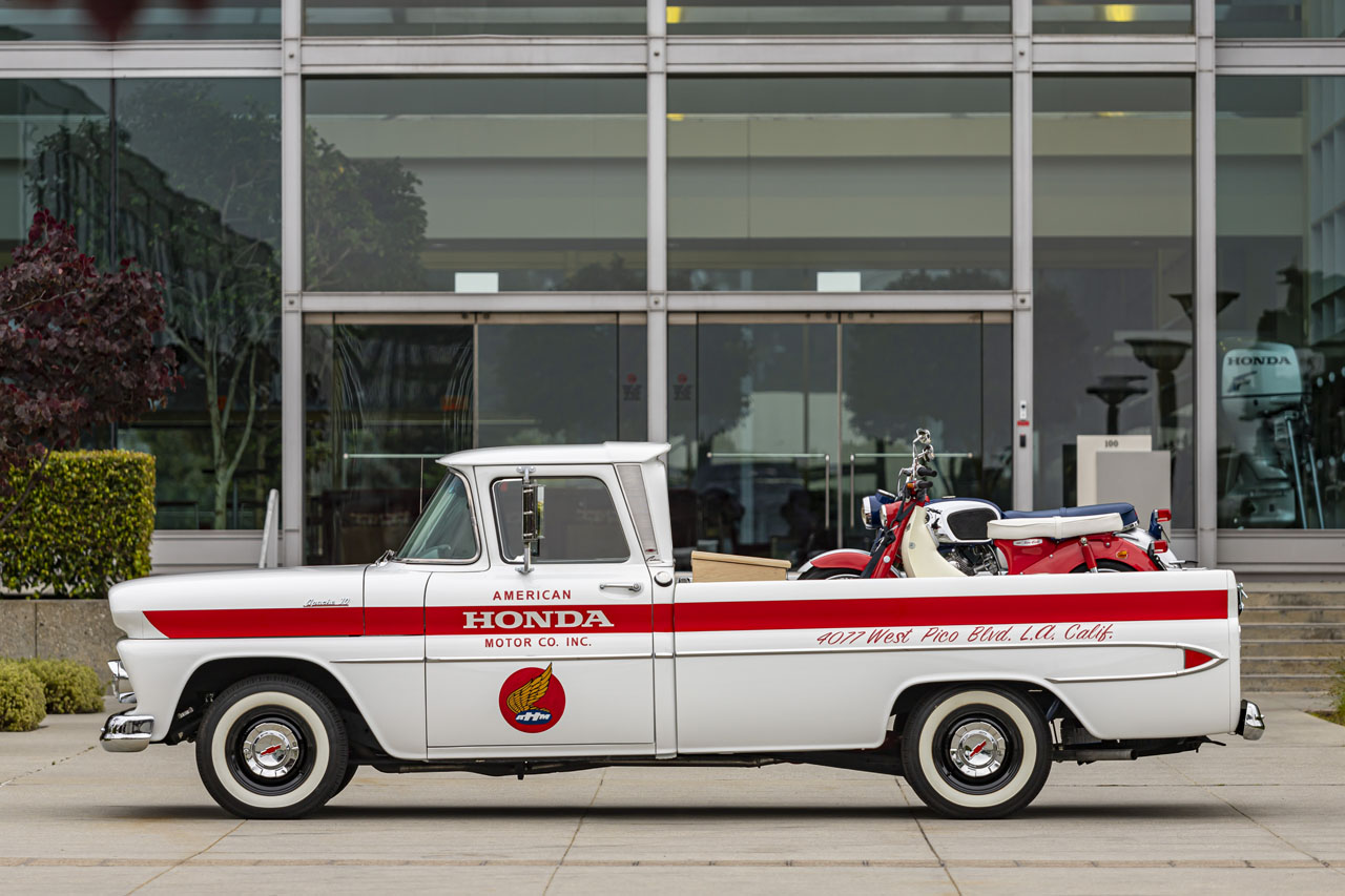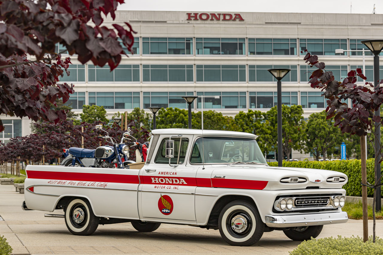 One of these fleet trucks is seen in an iconic American Honda photo from 1961 sitting in front of the original American Honda office at 4077 Pico Blvd in LA. To celebrate the 60th anniversary of American Honda; it has restored a 1961 Chevy Apache 10 truck to exactly match the one in that iconic photograph. The truck debuted at the June 11 60th anniversary celebration.