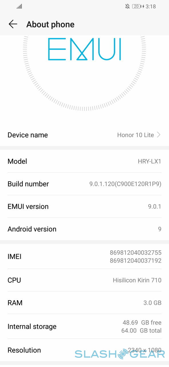 The Honor 10 Lite is one of the company's first phones to ship with Android 9 Pie out of the box. That means, of course, it also has Huawei's EMUI 9.0 custom experience. While Huawei and Honor have somewhat cleaned up their act and matched Google's standards as much as they can, it's still a heavily-customized skin with lots of apps pre-installed. On the upside, international models do also have Google Play services and apps pre-installed.