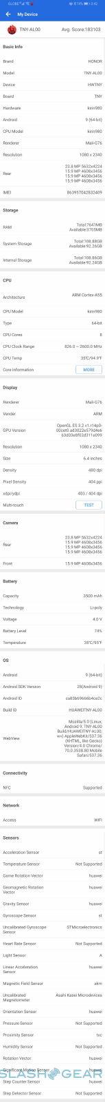In raw specs, the Honor Magic 2 rivals the Huawei Mate 20 and even the Huawei Mate 20 Pro. All three are powered by Huawei's boasted Kirin 980, one of the first 7 nm mobile processor and the first to sport dual Neural Processing Units (NPUs). The Mali-G76 GPU goes hand in hand with Huawei's GPU Turbo mode. The Magic 2 comes in 6 or 8 GB RAM and 128 or 256 GB storage configurations.