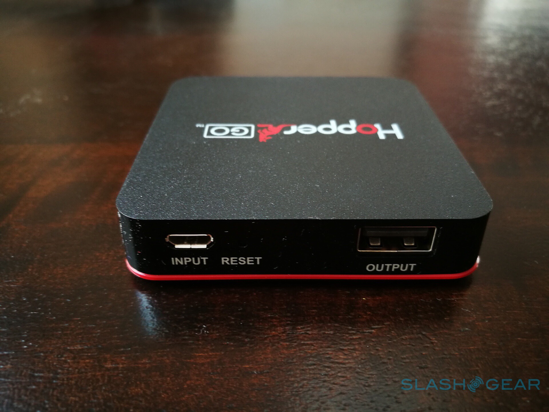 Like DISH's DVRs, the HopperGO isn't designed to be flamboyant or call attention to itself. The little portable box, much like its bigger siblings, are painted in glossy black with very few features on its face, save for, of course, DISH's conspicuous branding touches. The front is broken only by the usual power button and LED indicator lights. On the back the ports to connect the HopperGO to a compatible Hopper DVR, practically a Hopper 3 or at least a Hopper with Sling, for input and to another device for output. Amusingly, there's also a reset button for when things go wrong.
